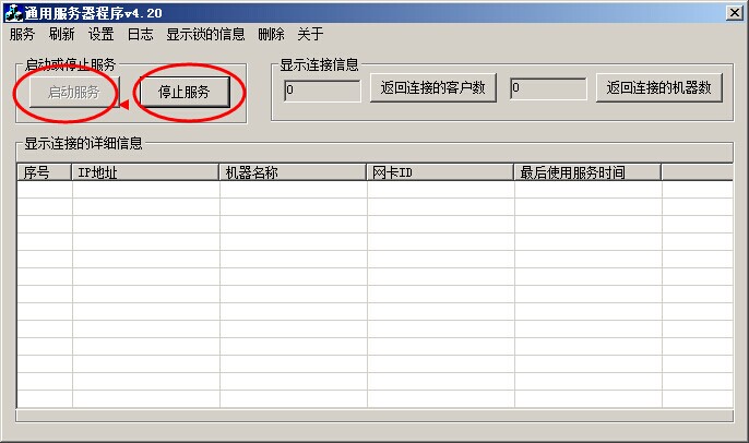雙擊任務欄右下角的網絡服務程序 ,彈出通用服務器程序窗口,先點停止服務,然后點啟動服務(參照下圖)