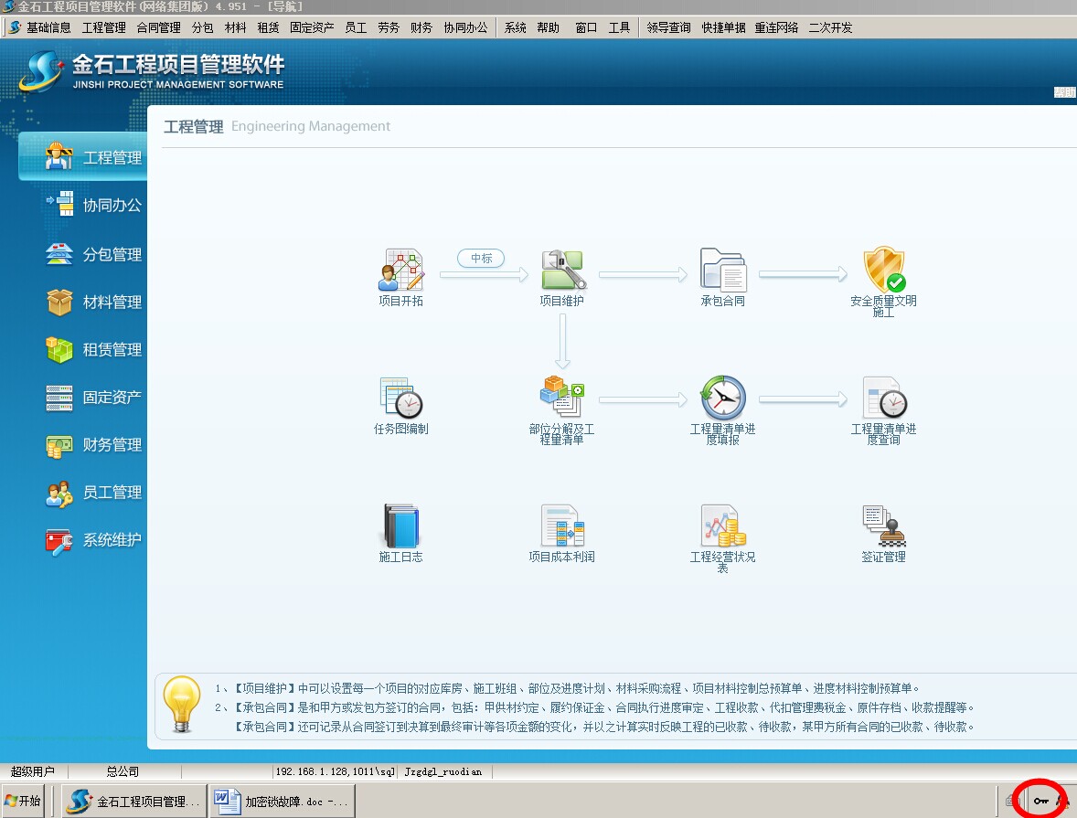 ①     檢查服務器端是否插有加密鎖,如沒插加密鎖,插上加密鎖,并啟動加密鎖服務程序