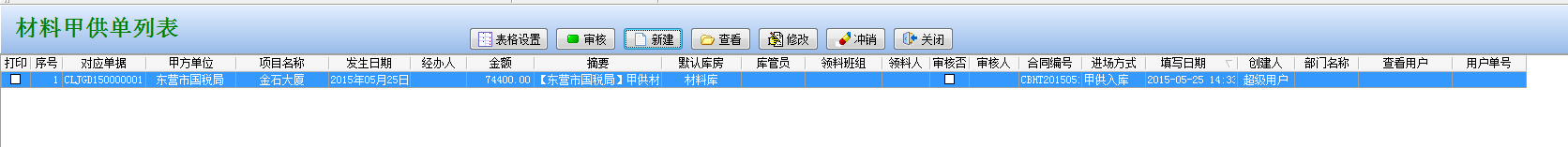 點擊【保存】返回到【材料甲供單列表】界面下,如下圖: