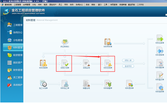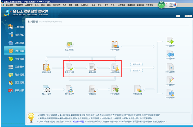金石工程項目管理軟件材料采購流程可根據企業不同的情況執行不同的工程項目材料采購流程。