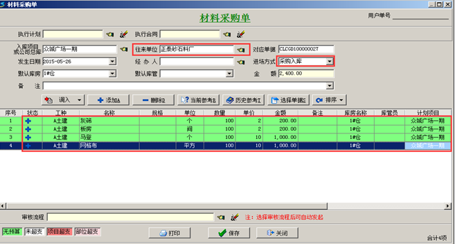 工程項目管理軟件材料采購流程