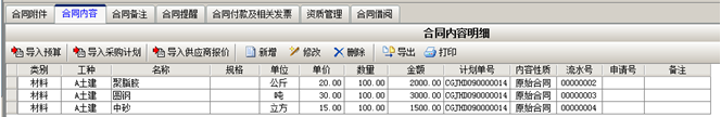 第三步,選擇完成之后會將信息調入到合同內容明細中,如圖