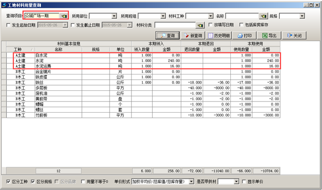 直進項目的材料在單據添加保存完成后體現在“材料用量查詢”里面,如圖: