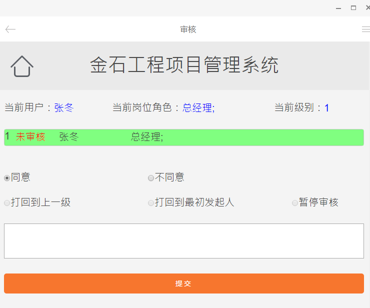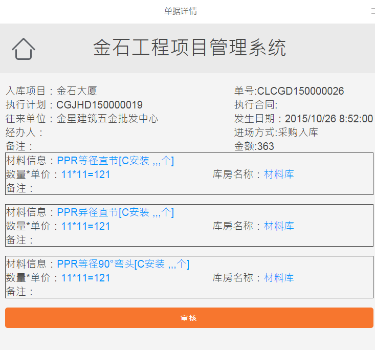 收到提醒信息后如果想審核該單據點擊“點擊審核”會自動跳轉到金石軟件手機版版(支持PC瀏覽器)界面。如下圖: