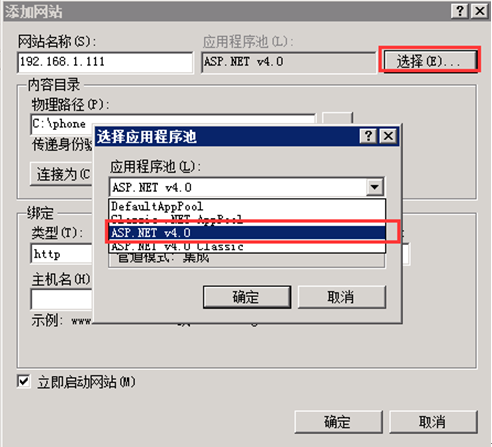 選擇好應用程序池為 Asp.net 4.0。如圖:
