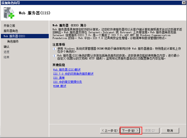 安裝步驟如圖所示(Windows server 2008系統)