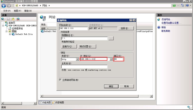 5. 在運行狀態輸入inetmgr,打開IIS管理器 添加網站,并選擇好應用程序池為 Asp.net 4.0 及網頁所在主目錄。