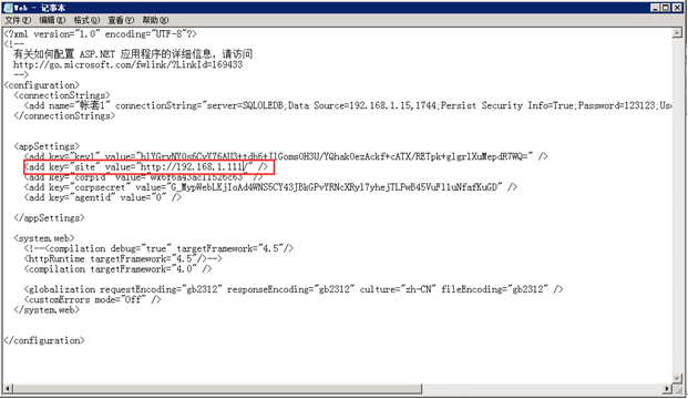 6. 設置web.conf 文件.IP地址、數據庫名稱、數據密碼、key字段等。如圖: