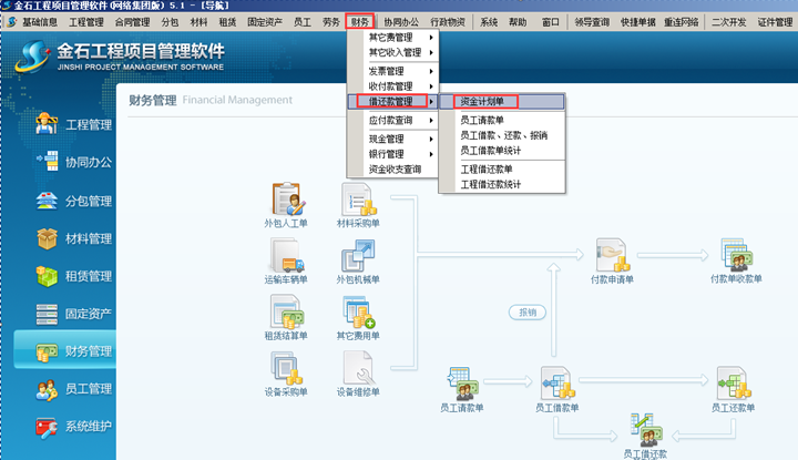 通常在利用工程管理軟件申請項目備用金時,沒有具體的資金計劃以及具體的單據對其進行控制。金石工程管理軟件中,在申請項目備用金之前,可在工程管理軟件的資金計劃單中做月度資金計劃或總的項目預算,方便控制管理項目備用金的申請。