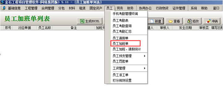 工程管理軟件中員工請假添加員工加班單,如圖: