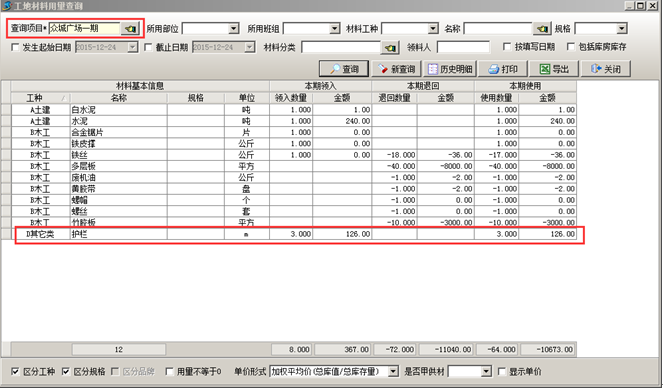 工程管理軟件中“材料調撥單”添加完成之后材料調撥到項目上,則可在材料用量查詢以及項目成本中查詢到對應的成本(如果是調撥到項目庫房則可在庫房中查到對應庫存)。