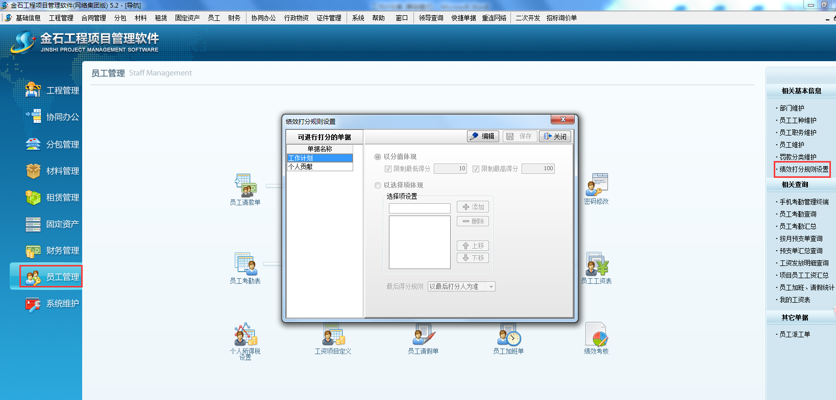 打開項目管理軟件【員工管理】-【績效打分規(guī)則設(shè)置】如下圖: