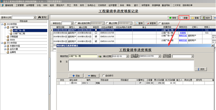 1、在施工過(guò)程中,要在工程項(xiàng)目管理系統(tǒng)中跟隨項(xiàng)目進(jìn)度做項(xiàng)目進(jìn)度填報(bào)。工程量清單編輯時(shí),填報(bào)方式為“進(jìn)度填報(bào)單”的工程可接做“進(jìn)度填報(bào)單”;