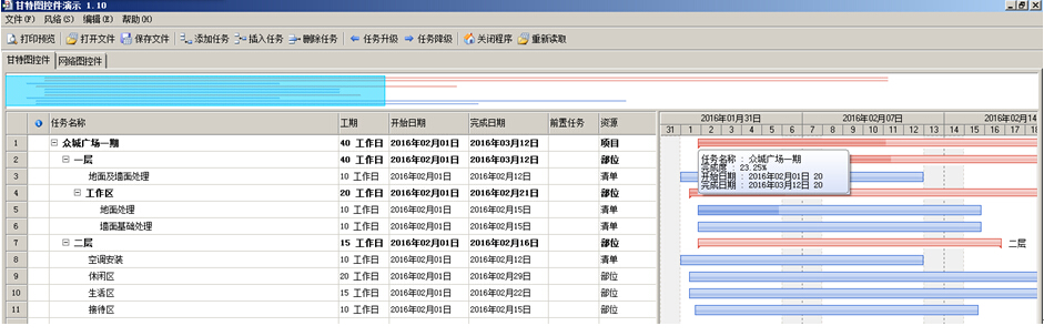 3、工程量進(jìn)度清單可生成甘特圖,如圖: