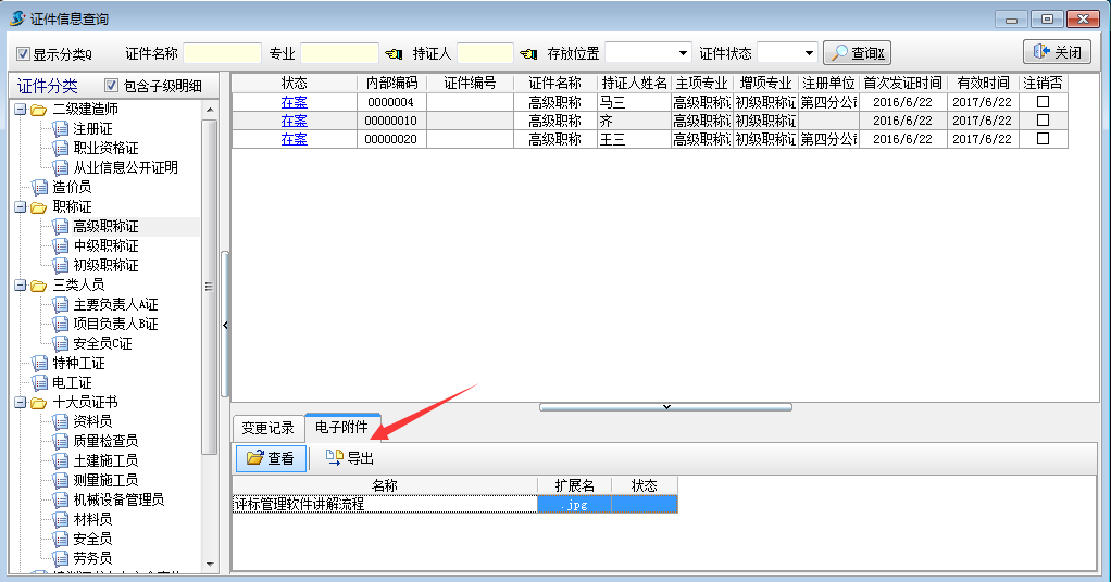 經(jīng)過我們授權(quán)的項目上的用戶可查看證件中的電子附件(下圖),不用再拿原件或復(fù)印證件了