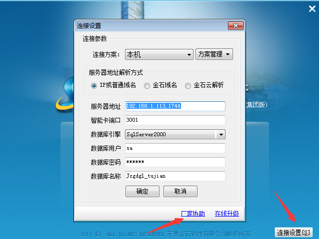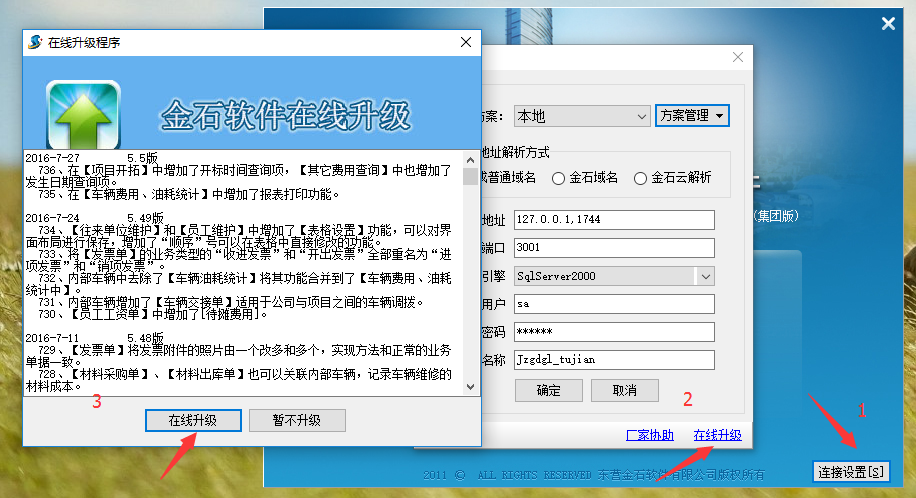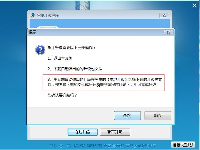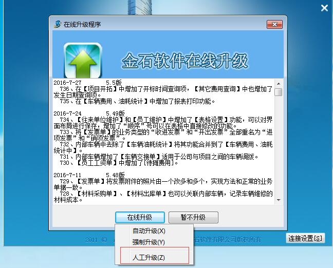 雙擊打開金石軟件圖標→連接設置→在線升級→人工升級