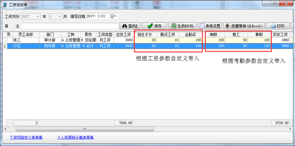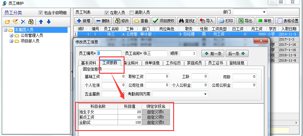 在工資表中我們已經(jīng)做了工資參數(shù),但往往因一些公司工資計算方式比較特殊導(dǎo)致不夠用,現(xiàn)增加了工資自定義功能用法如下