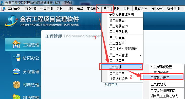 二、 菜單欄→員工→工資管理→工資參數(shù)定義