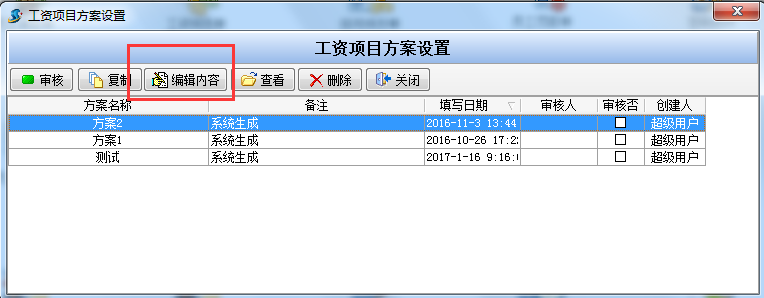選擇方案名稱→編輯內(nèi)容