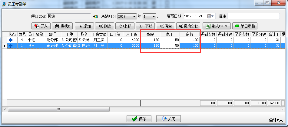 考勤和工資科目自定義