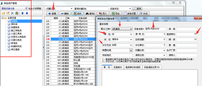 可以在圖中選擇種類,也可以自建新的項目,錄入后的設(shè)備信息可以在里面查詢到,并且可以觀察狀態(tài),比如說是否使用、歸屬公司、存放地點。