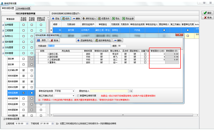 操作界面如下圖,可以為每個崗位進行審核限時。