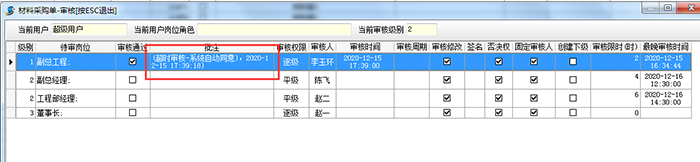 A 如某單據負責人未按時審核,被系統自動審核通過后,系統會做出相應的標記,表明該單據的情況。