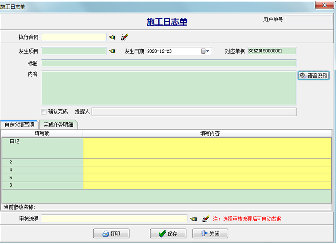 施工日志是施工方用于記錄工程項(xiàng)目真實(shí)情況,反饋一線信息的重要資料,也是施工管理軟件中進(jìn)度來源,金石軟件的施工日志模塊為每個(gè)任務(wù)提供明細(xì)反饋,并根據(jù)工地的實(shí)際情況,設(shè)計(jì)了語音識別功能,用戶可以通過語音簡述項(xiàng)目情況,語音自動識別為文字,減輕了工作量和工作難度。