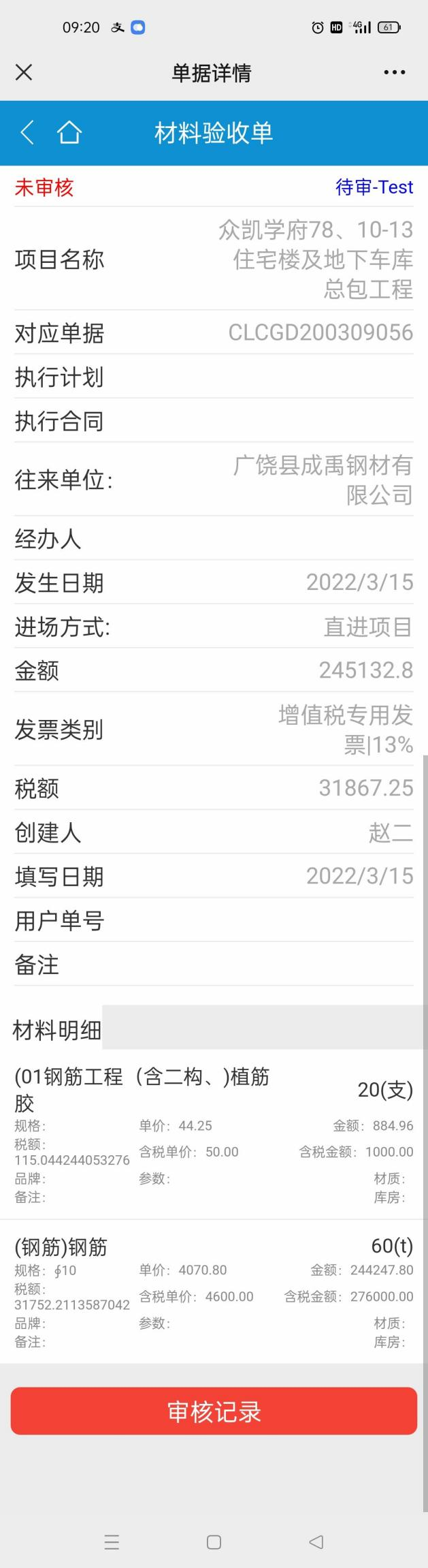 5、微信掃碼后可以看到單據詳情。