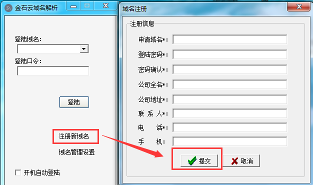 安裝完成后,在桌面打開(kāi)快捷方式,在彈出的對(duì)話框中注冊(cè)新域名。然后使用新域名登陸。