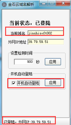 注:除了金石云解析也可以安裝其他域名解析軟件,例如花生殼金萬(wàn)維、3322等。使用其他域名解析軟件,