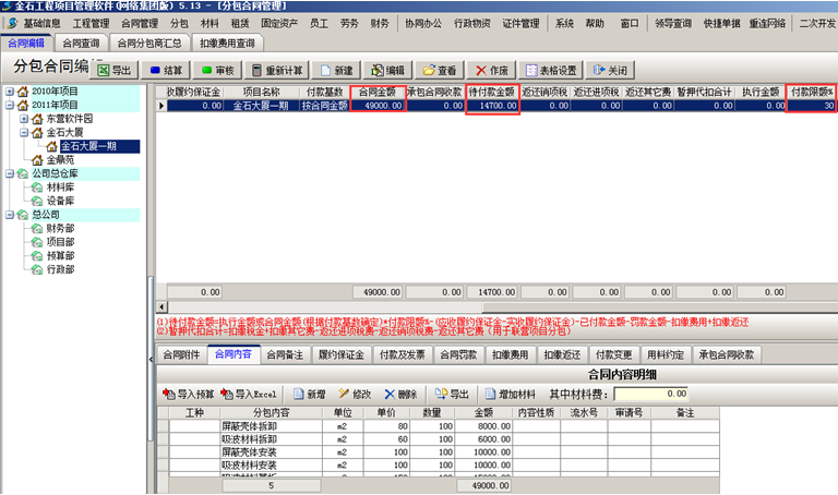 合同內(nèi)容導(dǎo)入系統(tǒng)之后,系統(tǒng)會計算合同金額以及代付款金額。如圖: