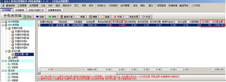 預(yù)付款完成則分包合同中“已付款金額”及“待付款金額”會發(fā)生改變,如圖所示: