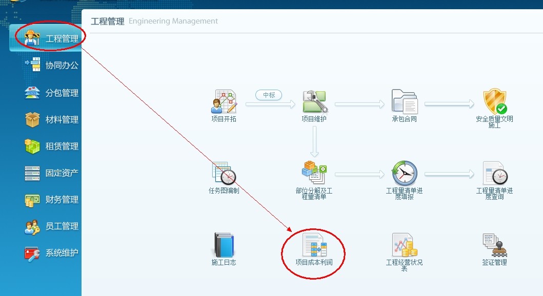 點(diǎn)擊導(dǎo)航欄工程管理-----項(xiàng)目成本利潤