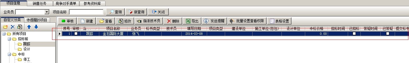 項(xiàng)目開拓建立之后,審核,然后可以錄入投標(biāo)項(xiàng)目的一些基本資料