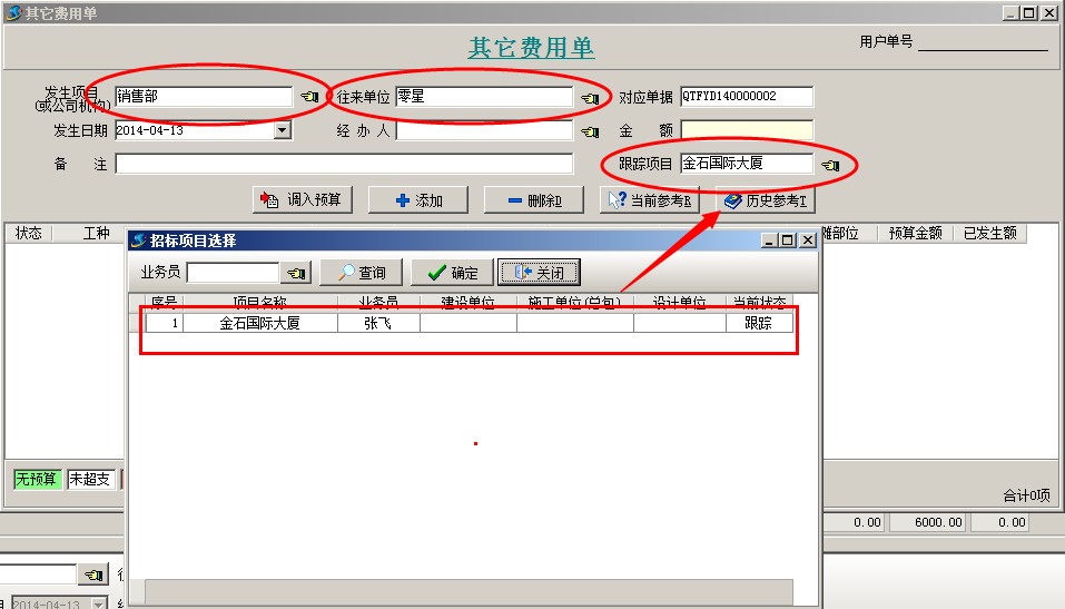 2、投標(biāo)之前發(fā)生的費(fèi)用,可以錄入【其它費(fèi)用單】